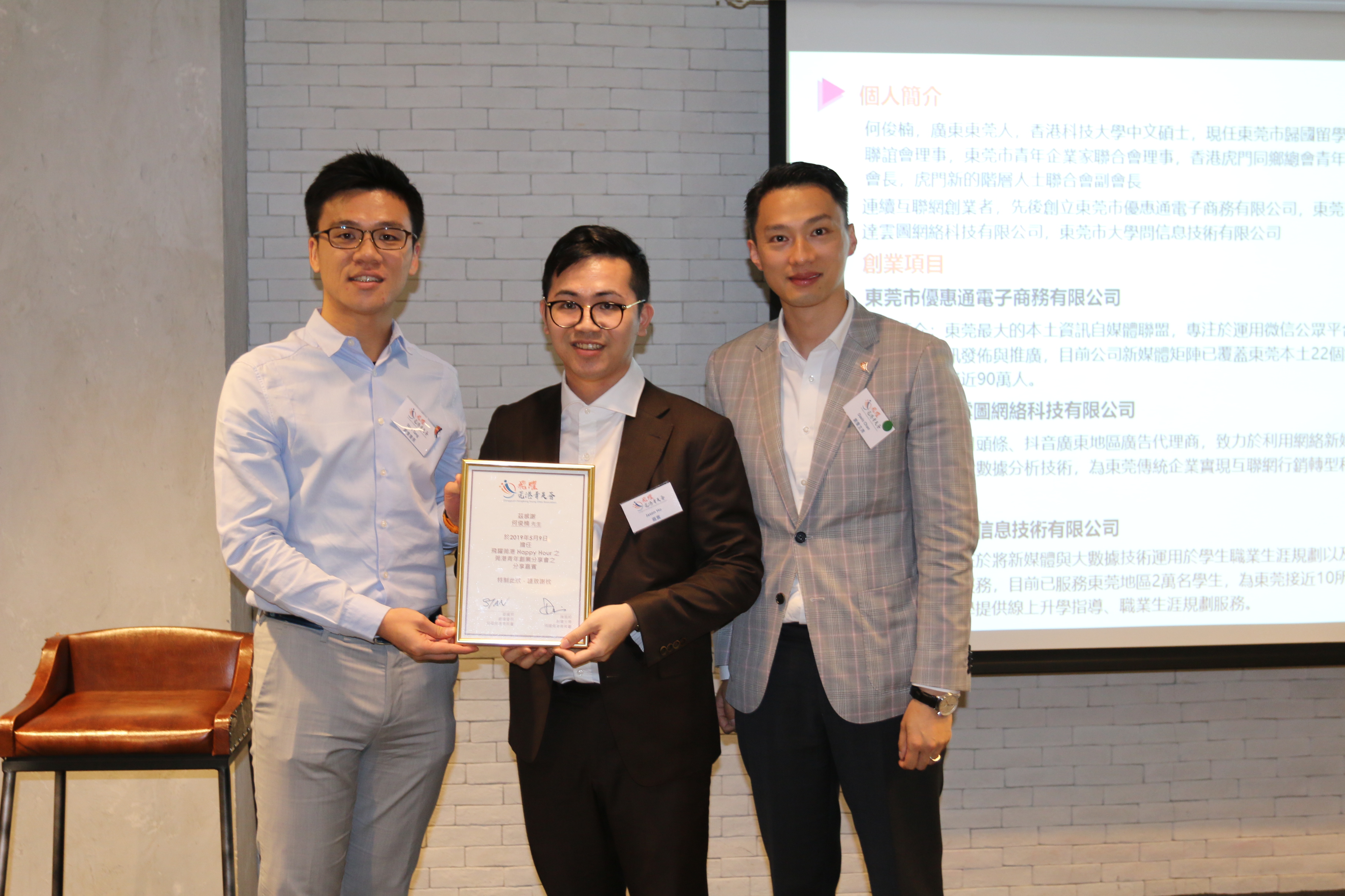 2019年5月9日,飛躍莞港青英薈舉行的 “飛躍莞港Happy Hour 之 莞港青年創業分享會” 已完滿結束。感謝嘉賓何俊楠先生在活動中分享在東莞創業的歷程及大灣區的發展機遇,更介紹了不同的創業扶持政策,令一眾出席人士獲益良多。