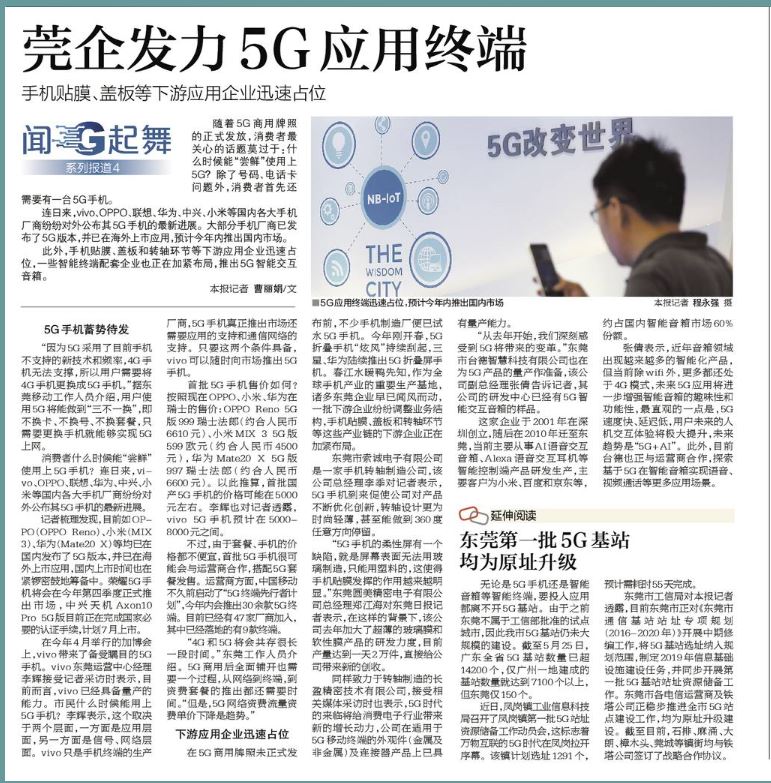 來源:東莞日報社旗下媒體 東莞時間網 “莞企發力5G應用終端,貼膜、蓋板等下游迅速佔位”